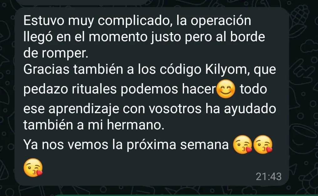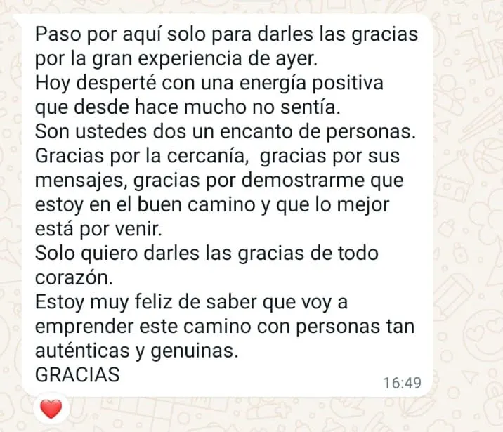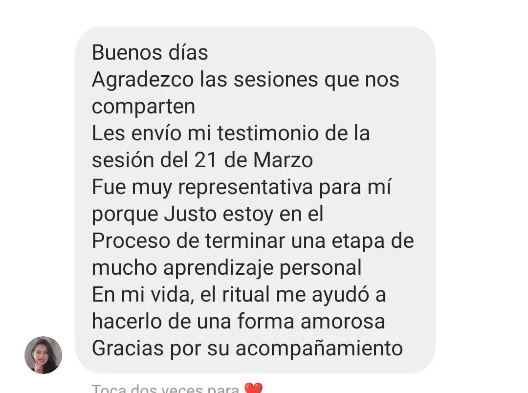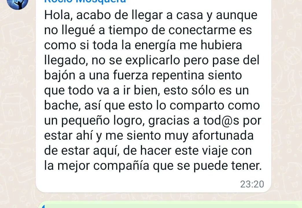 Hice un retiro de 5 días con ellos y empecé a recuperar mi energía pude hablar y sacar cosas que estaban silenciadas en mi interior, fui haciendo todo lo q me recomendaron y poco a poco fui sintiéndome tranquila, feliz y con mucho amor.